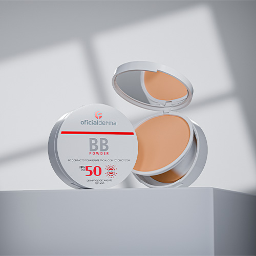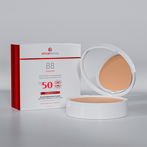 Com acabamento mate e cobertura leve, o BB Powder FPS 50 oferece alta proteção contra os raios UVA, UVB e luz visível, enquanto uniformiza o tom da pele com um toque natural. Sua textura ultrafina controla a oleosidade ao longo do dia, garantindo uma pele sequinha e protegida. Atua como maquiagem com tratamento, promovendo cobertura natural, hidratação com ácido hialurônico e ação antioxidante.